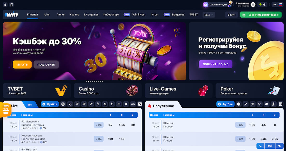 Казино дарит 500% к сумме первого депозита и позволяет получить кэшбек до 30% – эти акции являются постоянными. Полный список доступных ивентов представлен в соответствующем разделе сайта. Игорный портал 1win предоставляет возможность получить различные бонусы: